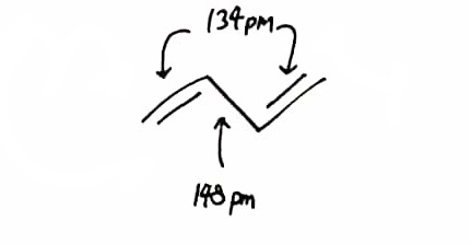 Ethane의 C-C single bond의 길이는 153pm이고 Ethene의 C-C double bond의 길이는 134pm입니다. 하지만 Figure 8에서 1,3-butadiene의 C-C single bond의 길이는 148pm로 Ethane의 C-C single bond의 길이보다 짧은 것을 확인 할 수 있습니다.