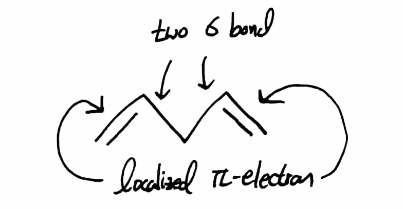 1. 두개의 double bond 사이에 있는 C-C single bond는 비정상적으로 짧습니다.