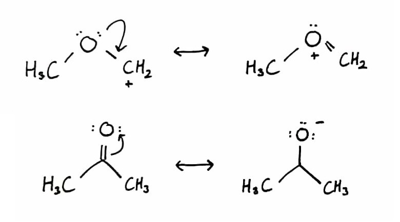 첫 번째로, Resonance arrow는 원자의 비공유 전자쌍(Lone pair) 또는 π-전자(π-electron)로부터 시작할 수 있습니다.