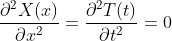 Equation (5)를 통해서 X(x)와 T(t)에 대한 식으로 정리1하면 Equation (6)과 Equation (7)을 얻을 수 있습니다.