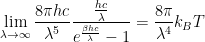 만약, 파장이 매우 길어지는 경우에 Equation (8)은 Equation (9)처럼 표현이 가능하고 그 결과 레일리-진스 법칙과 동일한 결과를 내는 것을 확인할 수 있습니다.