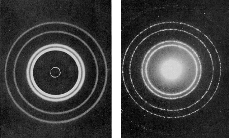 드 브로이가 예측한 물질파 이론은 1927년 데이비슨-거머(Davisom-Germer)에 의해 확인된 전자 회절 무늬1를 통해서 증명되었습니다.