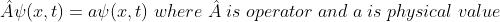 이때, ψ(x, t)는 연산자 A의 고유 함수(eigenfunction)라고 부르고 a는 연산자 A의 고윳값(eigenfunction)이라고 부르기도 합니다. 그래서 Equation (6)와 같은 형태를 고윳값 문제(eigenvalue problem)라고도 부릅니다. 다시 돌아와서, 우리는 Time-independent Schrödinger Equation에서 입자의 에너지를 얻을 수 있는 연산자를 정의해볼 것입니다.