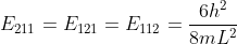 이러한 현상이 일어나는 이유는 시스템의 포텐셜이 x, y, z 방향으로 대칭이기 때문에 발생합니다. 만약, 대칭이 깨진 시스템, 즉 각 변의 길이가 서로 다른 3차원 상자의 경우에는 Equation (14)에서 각 항의 에너지가 달라집니다.