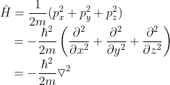 3차원 상자에서 해밀토니안 연산자는 다음과 같이 정의될 수 있습니다. 1