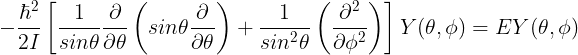헤밀토니안의 고유 함수를 Y(θ,φ)라고 정의합시다. 그러면 우리가 풀어야 할 고윳값 문제는 다음과 같습니다.