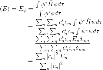 그러므로 이 상태(φ)의 에너지의 기댓값 <E>은