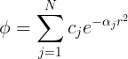 이때, fj는 타켓 헤밀토니안에 대한 적절한 변분 상수(variational constant)를 가진 잘 정의된 함수이고 cj 또한 변분 상수(variational constant)입니다. 예를 들어 가우스 함수(gaussian functions, e-αr2) 2의 특성은 수학적으로 정립되어 있습니다. 특히, 슬레이터 오비탈(slater orbital)이라 불리는 원자 오비탈 종류의 함수, e-αr, 과 비교해서 가우스 함수에 대한 적분은 쉽게 계산할 수 있습니다.
