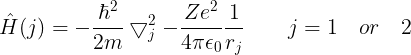 Equation (9)를 살펴보면 각 전자에 대한 헤밀토니안은 Z=2라는 사실을 제외하고 수소 원자의 헤밀토니안과 같은 모양을 가졌다는 사실을 알 수 있습니다. 그러므로 수소 원자에 대해 분석할 때 사용한 방법과 동일한 방법으로 정확하게 풀 수 있습니다.