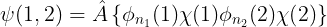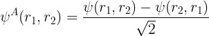 연산자 A는 함수를 비대칭적으로 바꿔주는 역할을 하며 χ는 스핀 상태를 의미합니다. 연산자는 공간(spatial) 부분 혹은 스핀(spin) 부분에 작용할 수 있기 때문에 결과적으로 4가지의 비대칭 함수가 가능합니다.