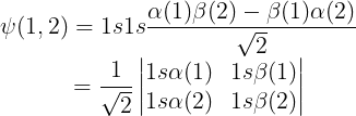 헬륨 원자의 바닥상태 파동 방정식은 2개의 유사 수소(hydrogen-like)의 1s 오비탈의 곱으로 근사될 수 있습니다. 이 경우 Equation (19)처럼 스핀 부분은 비대칭이 되어야 합니다.
