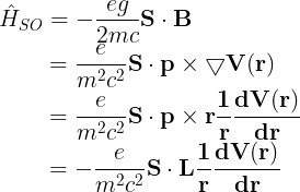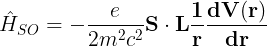 g는 랑데 g-상수(Lande g-factor)로 궤도 각운동량과 스핀을 가진 전자에 대한 g-상수 1를 의미합니다. 위의 정보를 이용해서 스핀-궤도 커플링의 헤밀토니안을 구성하면,
