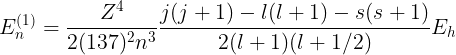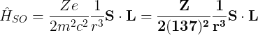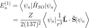 L와 S의 단위가 ℏ이므로, 스핀-궤도 커플링에 의한 에너지의 예상 값은 약 1/(137)2Eh가 될 것입니다. 따라서, 1차 섭동 이론을 유사 수소 원자의 에너지에 대한 보정항으로 간주하기 위해서 사용해보면,