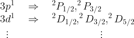 나트륨(Na)의 바닥상태 전자 배열은 [Ne]3s1입니다. 그러므로 우리는 3s 오비탈을 점유하고 있는 하나의 전자만 고려할 것입니다. 바닥상태의 항기호는 2S1/2이고 들뜬상태의 경우 Equation (9)처럼 나타날 것입니다.