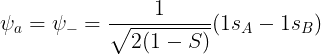 그리고 ψ-의 경우 A와 B의 원자 오비탈의 부호가 반대이기 때문에 Equation (19)와 음의 부호를 제외하고 같은 형태를 가집니다. 즉,