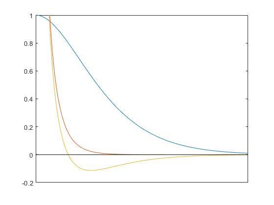 먼저, 쿨롱 적분 J는 짧은 거리에 대해서는 반발력으로 작용하지만 R이 증가함에 따라서 빠르게 0에 수렴하는 것을 확인할 수 있습니다. Equation (15)에서 R이 작으면 첫 번째 항의 전자 밀도는 감소하기 때문에 양성자 사이의 반발 에너지는 짧은 거리에서 지배적일 것입니다. 그리고 R이 전자를 하나의 양성자가 국부화하기에 충분하다면 다른 양성자는 가우스 법칙으로 인해 전자 밀도를 점 전하(point charge)로 볼 수 있게되고 , 첫번째 항과 두번째 항이 서로 상쇄되므로 0으로 수렴하게 되는 것 입니다. 1