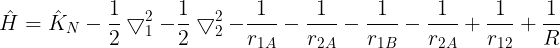 Figure 1을 통해서 수소 분자의 헤밀토니안을 원자 단위로 나타내면