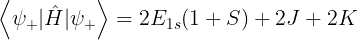 쿨롱 적분 J와 교환 적분 K에 대해서 1sA와 1sB를 바꿔도 동일한 결과가 나오기 때문에 Equation (14)의 해를 얻을 수 있고, 정리하자면 Equation (8)의 분자는 Equation (17)와 같습니다.