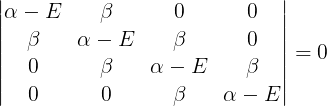 Hückel approximation에 의해서 Secular determinant는 Equation (8)처럼 주어집니다.