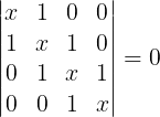 에텐과 부타디엔의 경우와 달리 우측 상단과 좌측 하단에 β가 있는 것을 확인할 수 있는데, 이는 벤젠이 고리형태를 가지고 있어서 1번 탄소와 6번 탄소가 연결되어 있기 때문입니다. 부타디엔을 접근한 방법과 동일하게 x=(α-E)/β라고 두고 Secular equation을 구하면