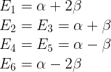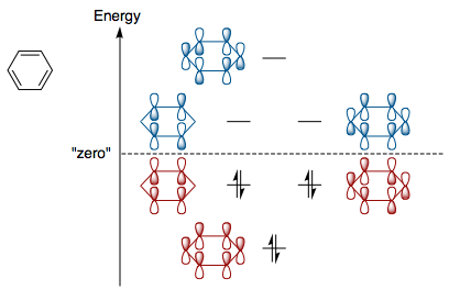 그러므로 6개의 π 분자 오비탈의 에너지는 다음과 같이 주어집니다.