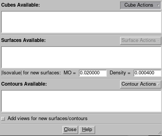 fchk 파일이 열리면 Result 탭의 Surfaces/Contours를 클릭하면 아래와 같은 새로운 창이 뜹니다.