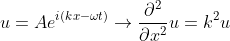 이러한 문제점을 해결하기 위해서 운동 에너지(kinetic energy)를 도입해야 합니다. 이전 포스팅2에서 파동의 운동에너지는 k2과 관련 있다는 사실을 확인했습니다. Equation (4)와 같이 u를 일반적인 파동 방정식으로 표현하고 x에 대해서 편미분을 두 번 진행하면 k2를 얻을 수 있습니다.