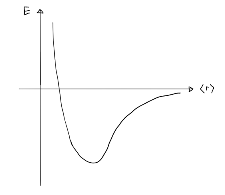 이때, <r>은 전자와 핵의 거리의 평균값1을 의미합니다. 자세한 내용은 다른 포스팅에서 다루겠습니다. 즉, Potential Energy는 전자와 핵의 거리가 가까워질수록 작아집니다. 즉, 전자가 핵에 충돌한다는 결말로 이어집니다.